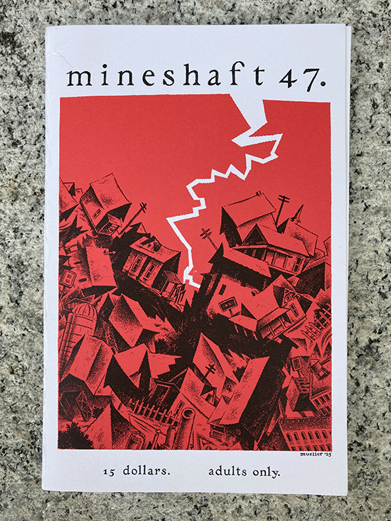 December 14, 2025 UPDATE: Mineshaft #47 is at the printer, coming soon, & ready for Pre-Order!!! Featuring revolutionary front cover art by Christoph Mueller, with beautiful back cover art by R. Crumb! Plus... new work by R. Crumb, Christoph Mueller, Jim Blanchard, Drew Friedman, Aaron Horkey, Brandon Holt, Simone Baumann, Denis Kitchen, David Collier, Glenn Head, Thomas Ott, Jose Arroyo, Bill Griffith, Mary Fleener, Sophie Crumb & Kian Radpouyan, Paul Karasik, Robert Armstrong, Tony O'Neill, AND MUCH MORE!!! MINESHAFT #46 is still available!!! Don't miss this amazing All Star issue! A small revised edition of Mineshaft #4, long out-of-print, is also now available!!! Featuring Charles Bukowski, a beautiful new logo & cover lettering by Christoph Mueller, and a new drawing of banjo player Gus Cannon by R. Crumb!!! Many MINESHAFT back issues will be sold out soon... Click here for more info and to order Today!